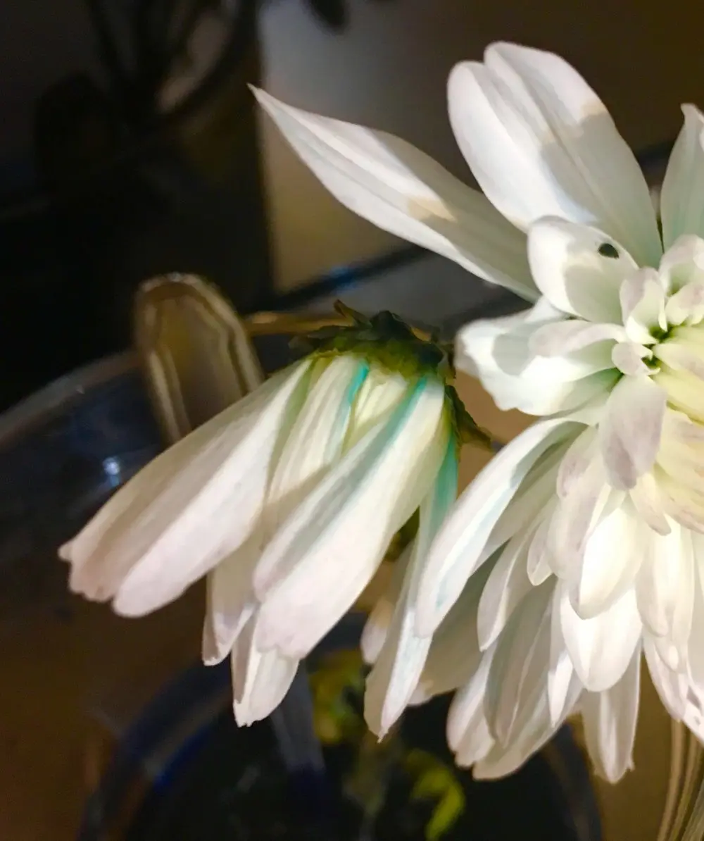 Am decis să vă povestesc așadar ce am făcut săptămâna asta, un “proiect” în care am folosit crizanteme albe, colorant alimentar și apă.